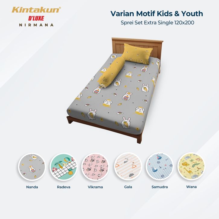 Kintakun Sprei 120 Extra Single Youth Dluxe Nirmana Microfiber 20 cm (3in1)