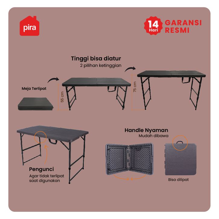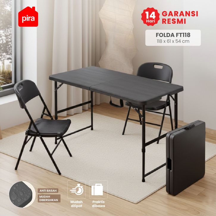 PIRA - FOLDA FT118 Meja Serbaguna / Meja Lipat Outdoor / Meja Taman dengan Kaki Adjustable / Meja Makan