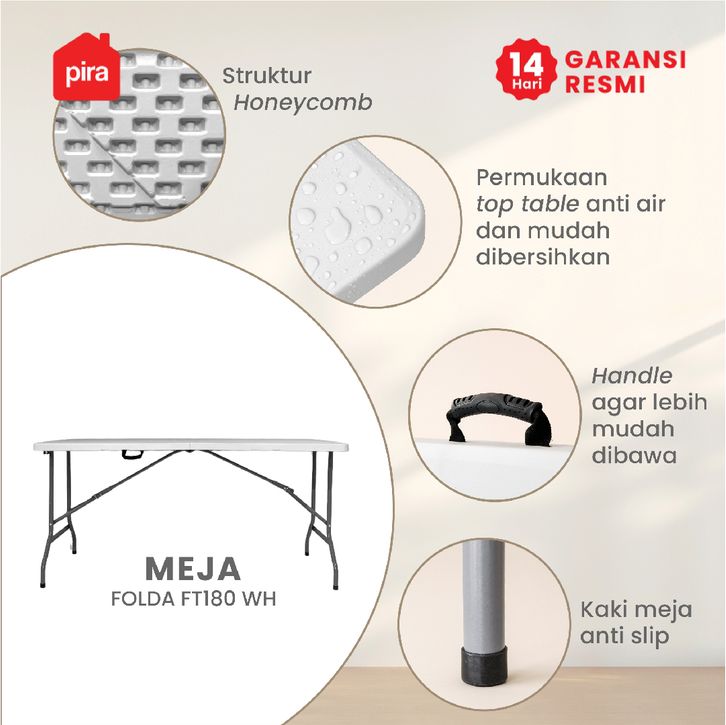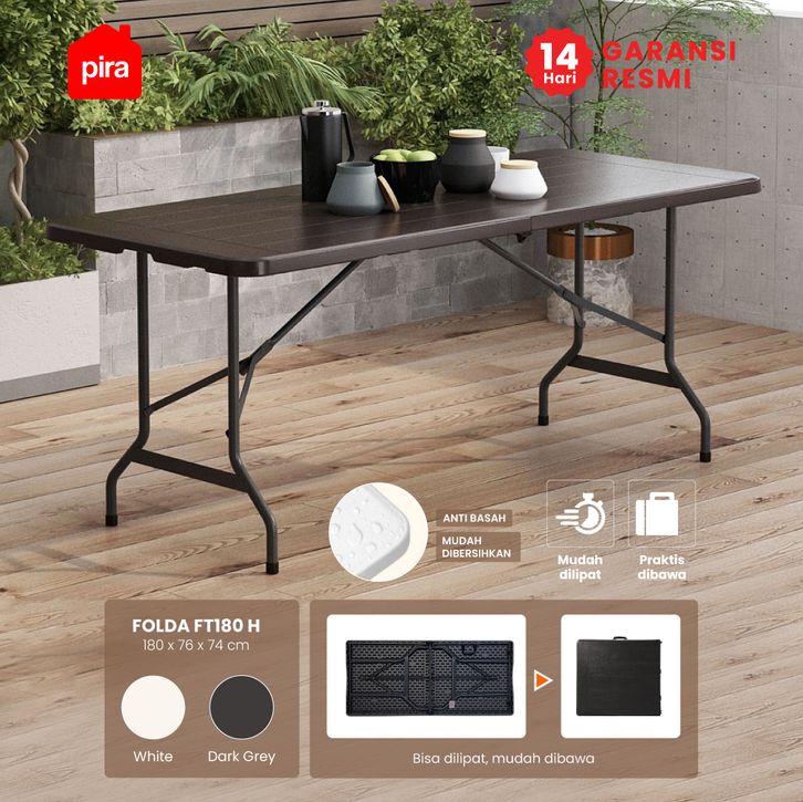 PIRA - FOLDA FT180 WH Meja Serbaguna / Meja Lipat Outdoor / Meja Taman / Meja Makan
