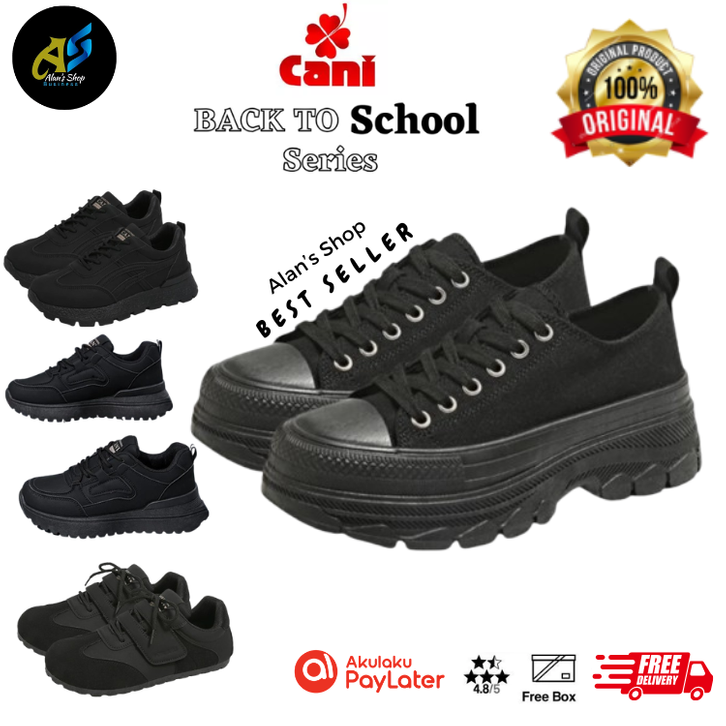 Sepatu Cani Hitam Sneakers Sekolah Pria Wanita Full Black