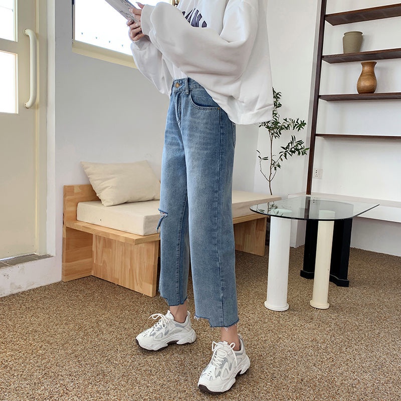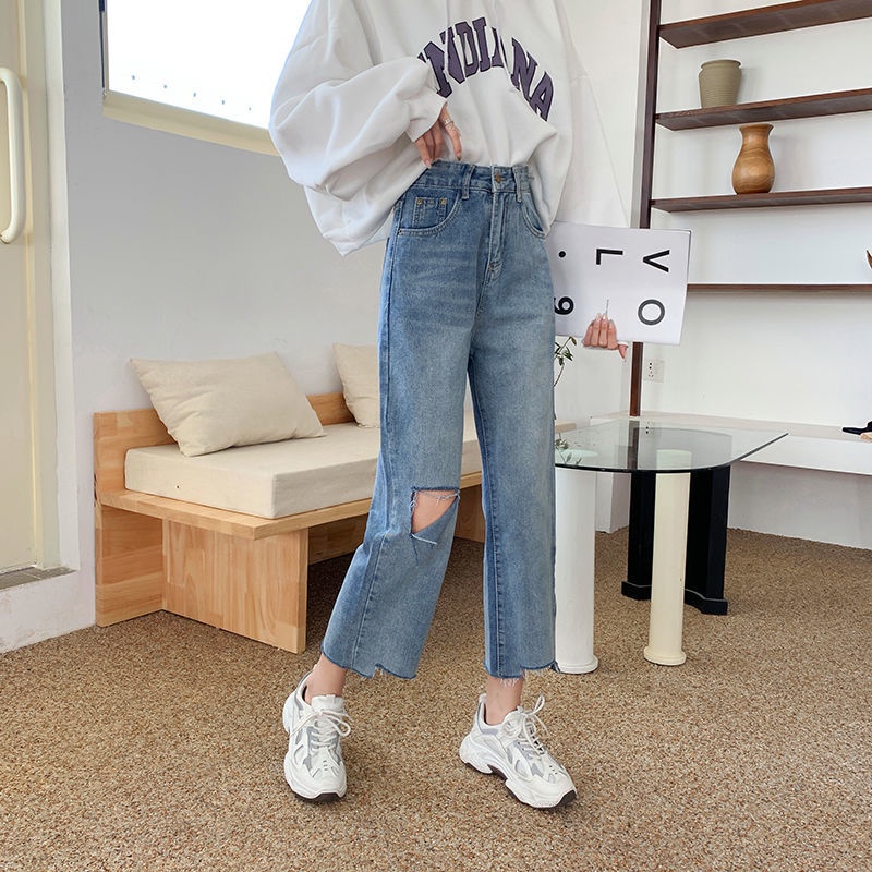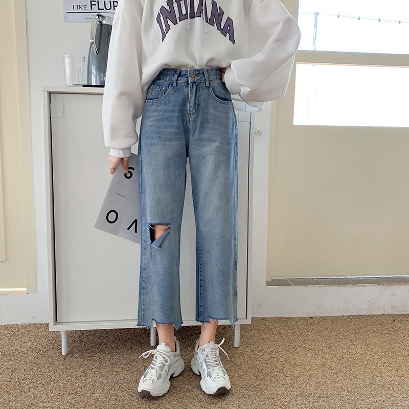 TERMURAH KEKINIAN IMPORT KOREAN STYLE RIPPED HIGHWAIST CELANA JEANS WANITA