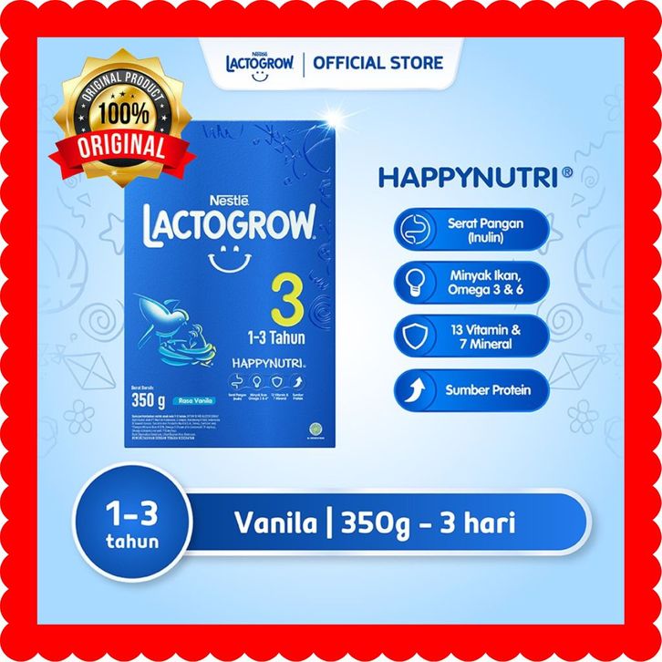 Nestle Lactogrow 3 Susu Pertumbuhan Rasa Vanila 1-3 Tahun Box 350 g