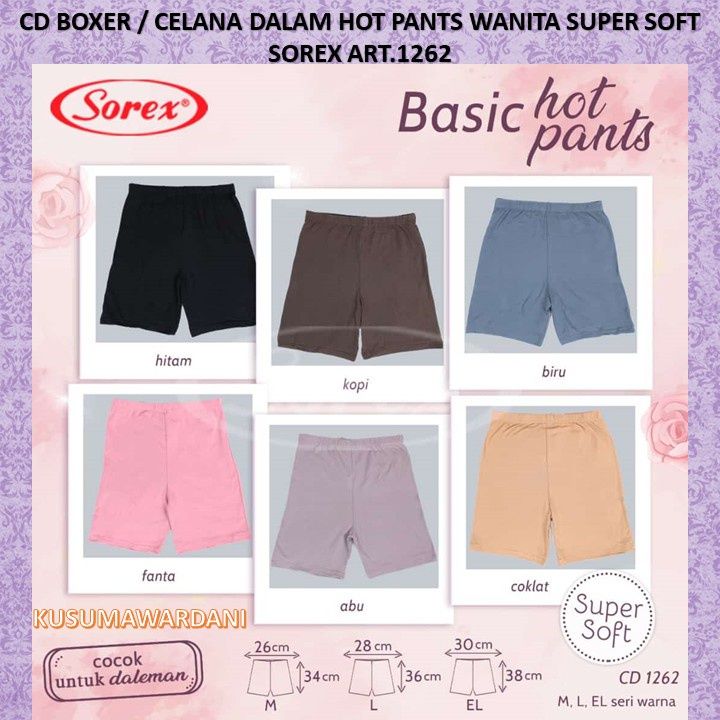 Sorex 1262 | Celana Basic Hot Pants Wanita / Boxer Segi Empat Cewek Super Soft Kusumawardani Malang