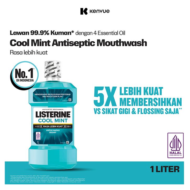 Listerine COOLMINT 500 mL x 2 Botol antiseptic kumur mulut / Menyegarkan