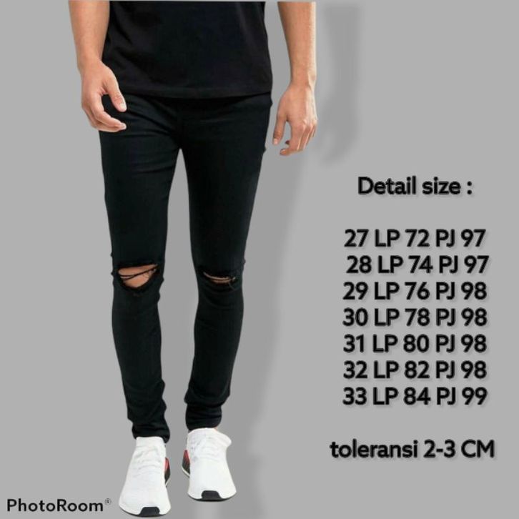 Celana jeans cowok panjang Sobek Lutut 27-38 Ripped Jeans softjeans hitam strech melar destroy