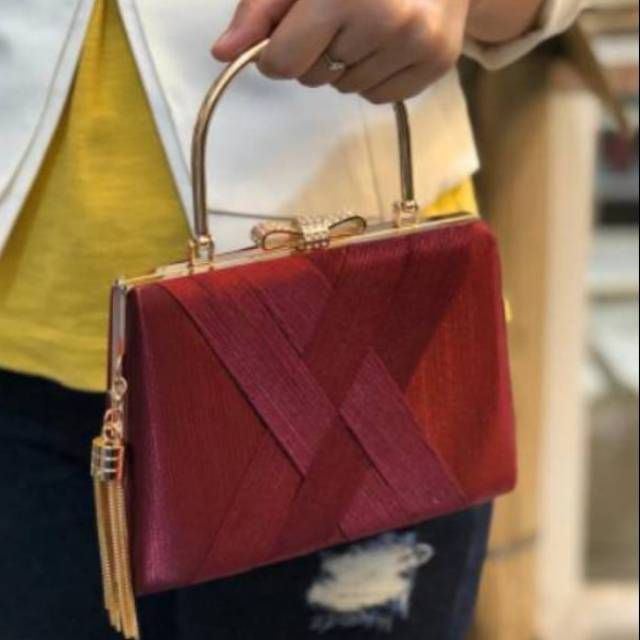 Tas Pesta Mewah Wanita Tas Kondangan Kekinian Tas Tangan Clutch Wanita Tas Pesta ARYA Clutch Embellished Crystal Box