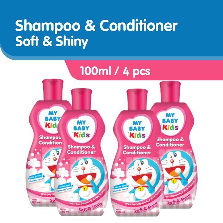 MY BABY Kids Shampoo & Conditioner Doraemon 100 ml (4 pcs) - Sampo & Kondisioner Anak Rambut Wangi dan Halus
