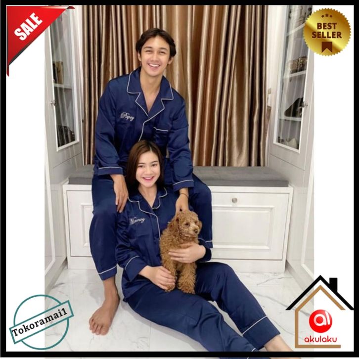 Piyama pajamas baju tidur couple custom bordir nama hadiah kado gift nikahan wedding pernikahan prewedding untuk
