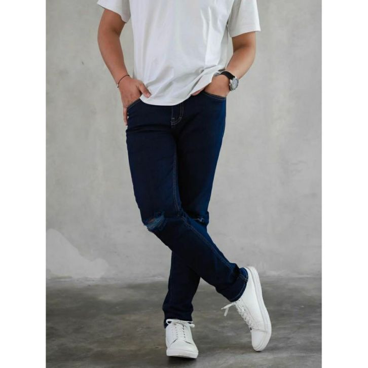 CELANA JEANS PRIA SOBEK LUTUT ROBEK RIPPED SOFT JEANS PREMIUM SIZE 27-33