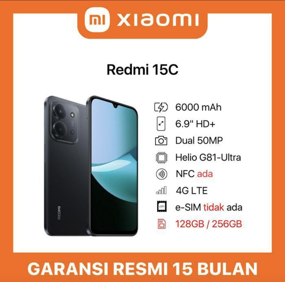 Xiaomi Redmi 15C 8GB+256GB Garansi Resmi 15 Bulan