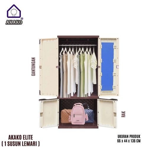 (BEBAS ONGKIR) TERBARU LEMARI BESAR - LEMARI PAKAIAN PLASTIK AKAKO ELITE GANTUNGAN DAN RAK / LEMARI PAKAIAN TERMURAH