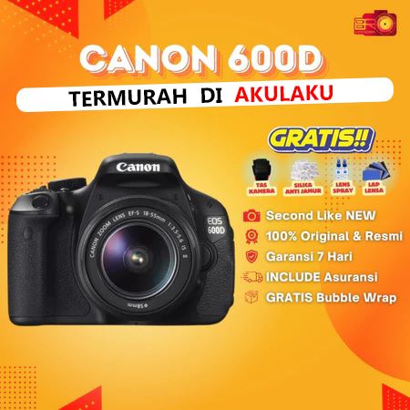 KAMERA CANON EOS 600D SECOND VIGNET TIPIS LENSA KIT + LENSA FIX KUALITAS DI ATAS CANON 1300D TAG CANON 650D 700D 70D 7D