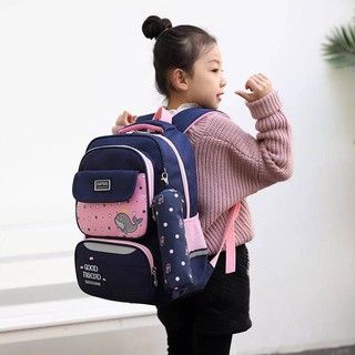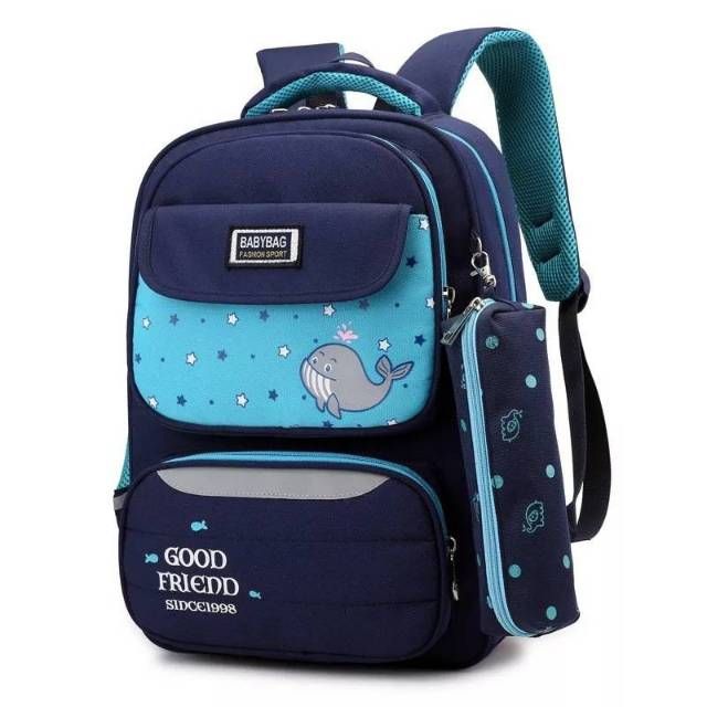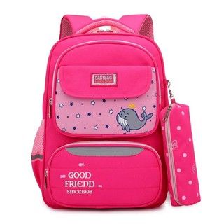 Tas Sekolah untuk Anak Perempuan Anak Laki-laki Sekolah Dasar Ransel Besar Nilon Kartun Cetak Paus