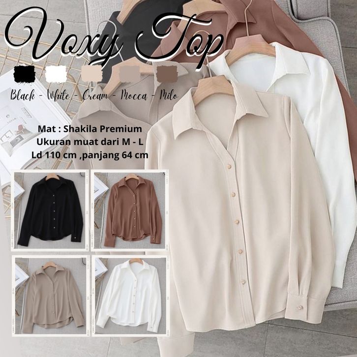 KEMEJA WANITA POLOS - VOXY SHIRT - TOP CASUAL WANITA - ATASAN KOREA - KEMEJA BLOUSE CASUAL
