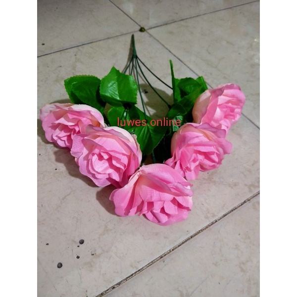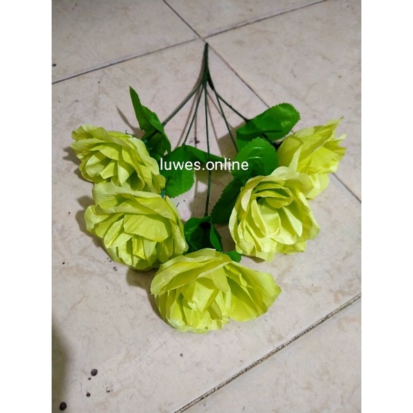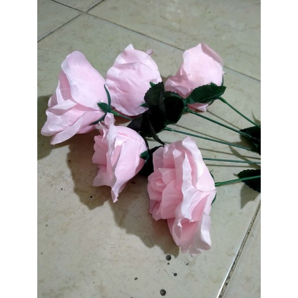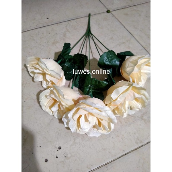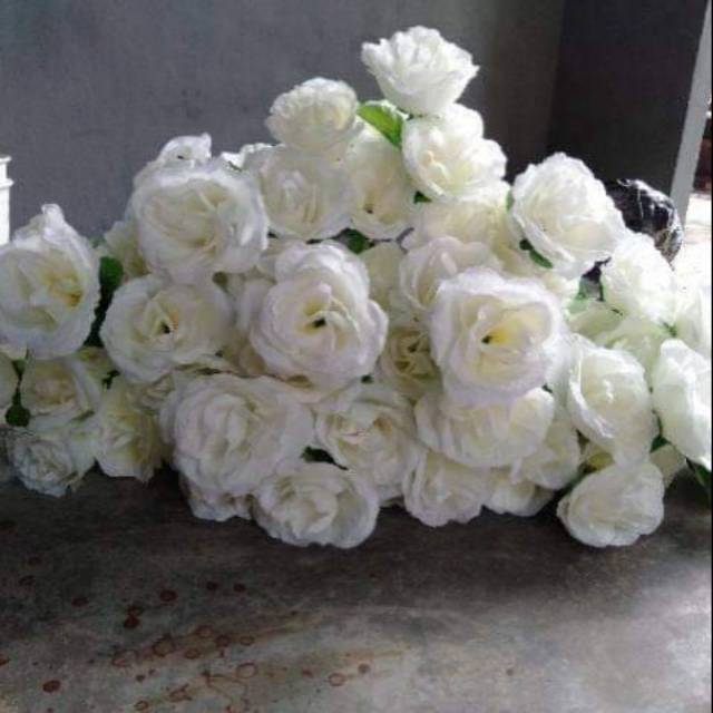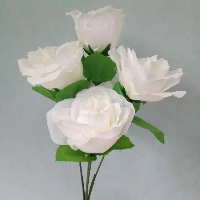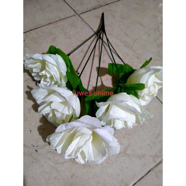 BUNGA MAWAR HIAS PUTIH 5 KUNTUM TANGKAI ARTIFICIAL IMITASI PALSU UNTUK BUKET AKAD PESTA PERNIKAHAN