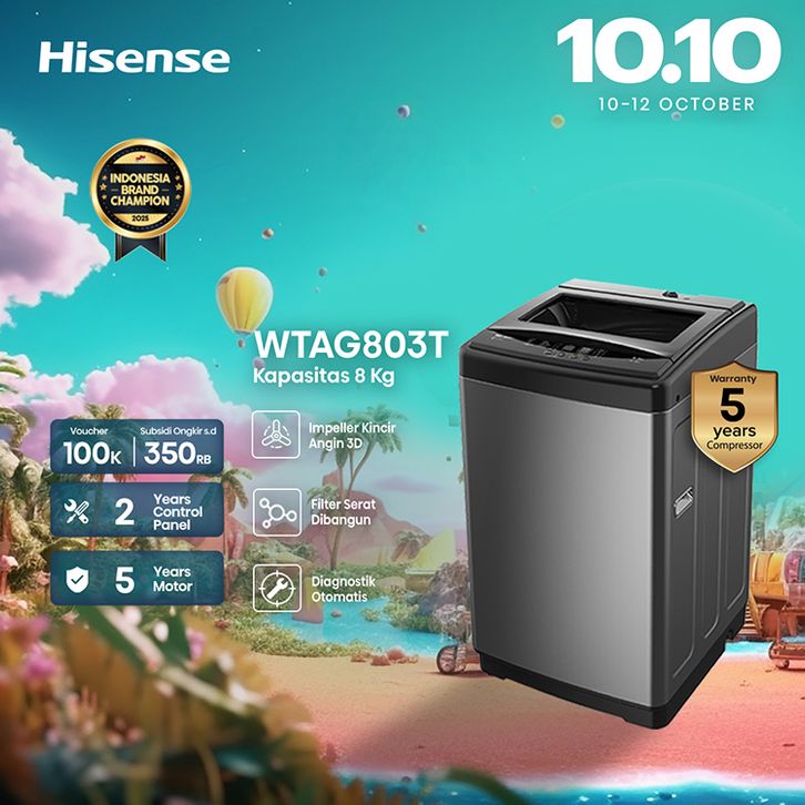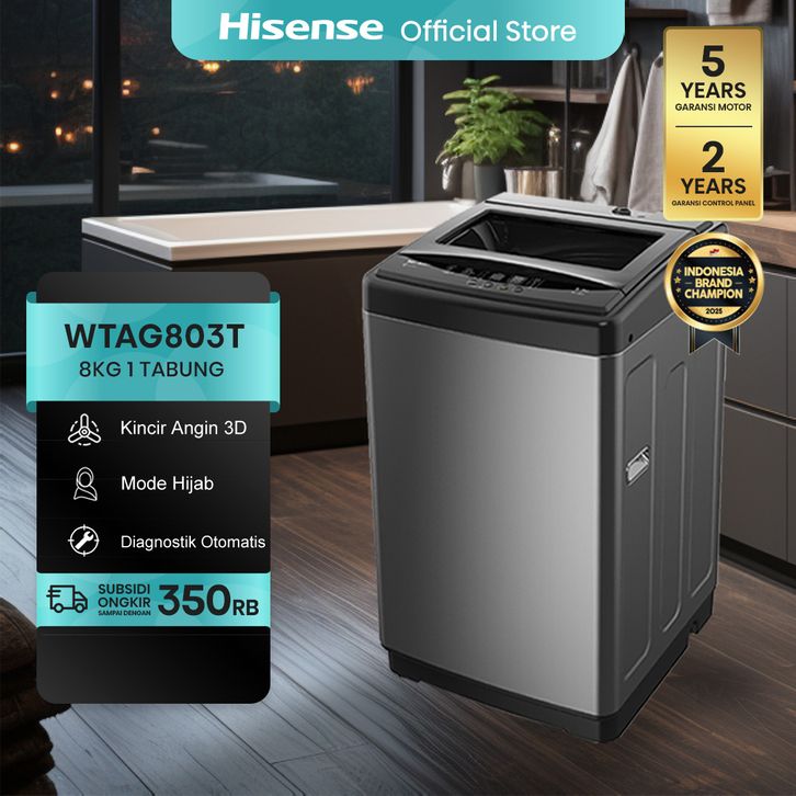 Hisense Mesin Cuci 1 Tabung Top Loading 8KG Washing Machine WTAG803T Garansi 2 tahun【Glass lid】【10 Precision Water Level