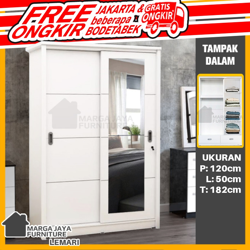 Lemari Pakaian Pintu Sliding + Kaca Full Varian Warna Putih Coklat Hitam