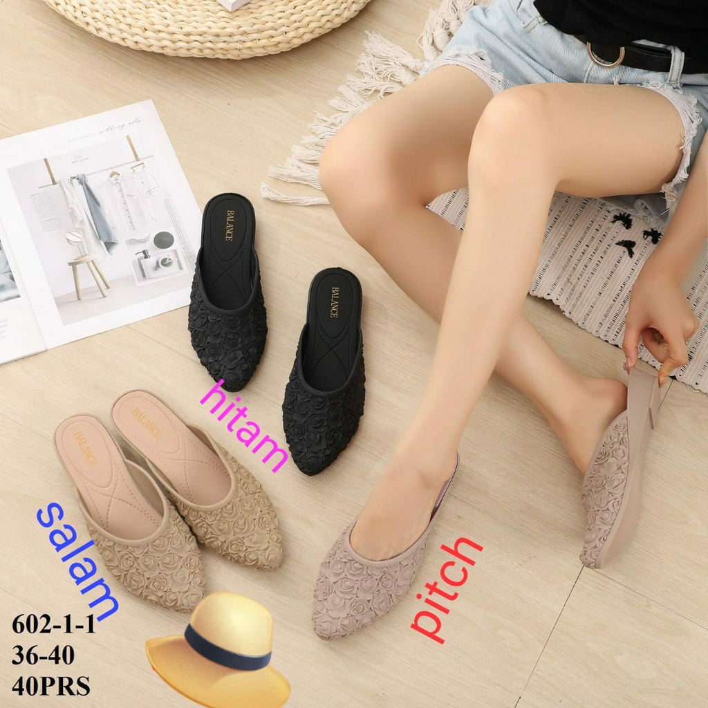 SANDAL KARET SENDAL WEDGES JELLY SPON SHOES CEWEK TRENDY WANITA IMPORT MURAH TERBARU BALANCE 602-1B-ZR