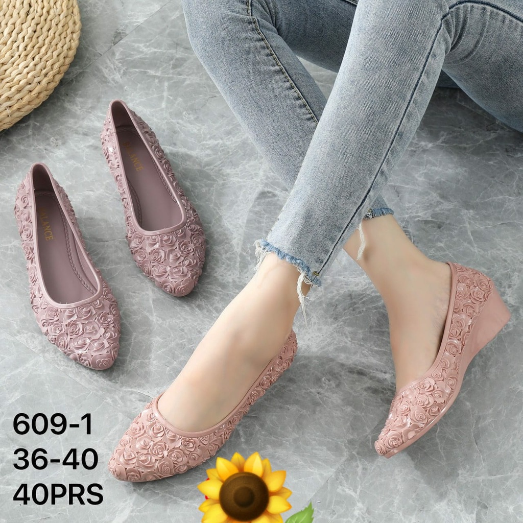 SANDAL KARET SENDAL WEDGES JELLY SPON SHOES CEWEK TRENDY WANITA IMPORT MURAH TERBARU BALANCE 609-1