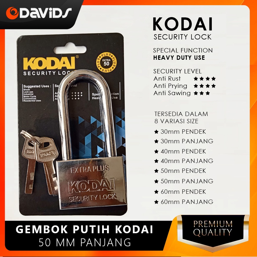 Gembok Pagar Anti Karat Air Maling Leher Panjang Jumbo Kamar Rumah Pintu Motor Stainless Stenlis Kodai Putih