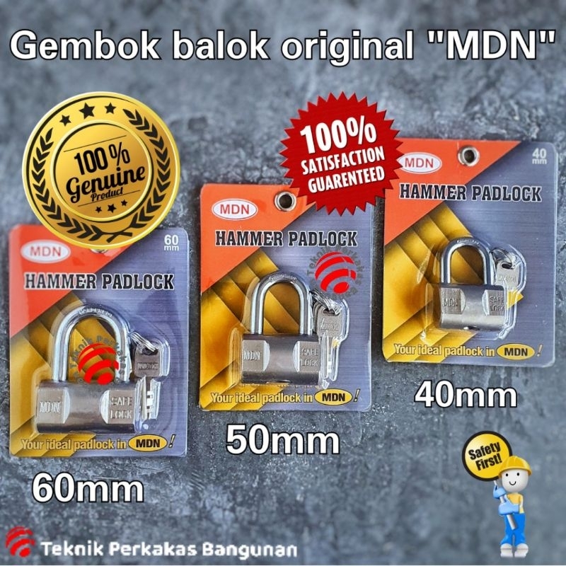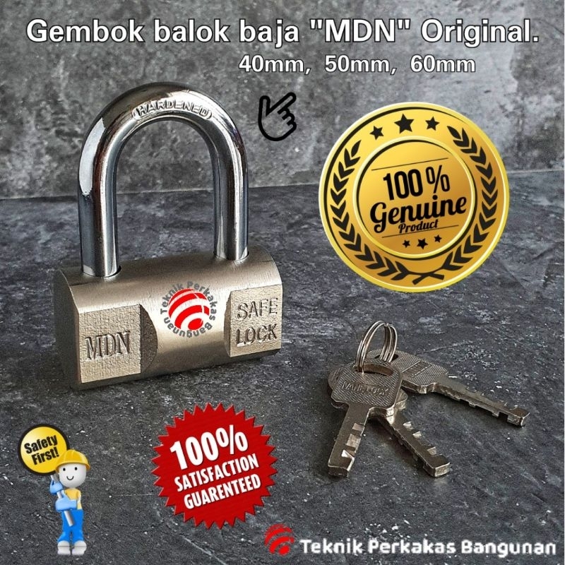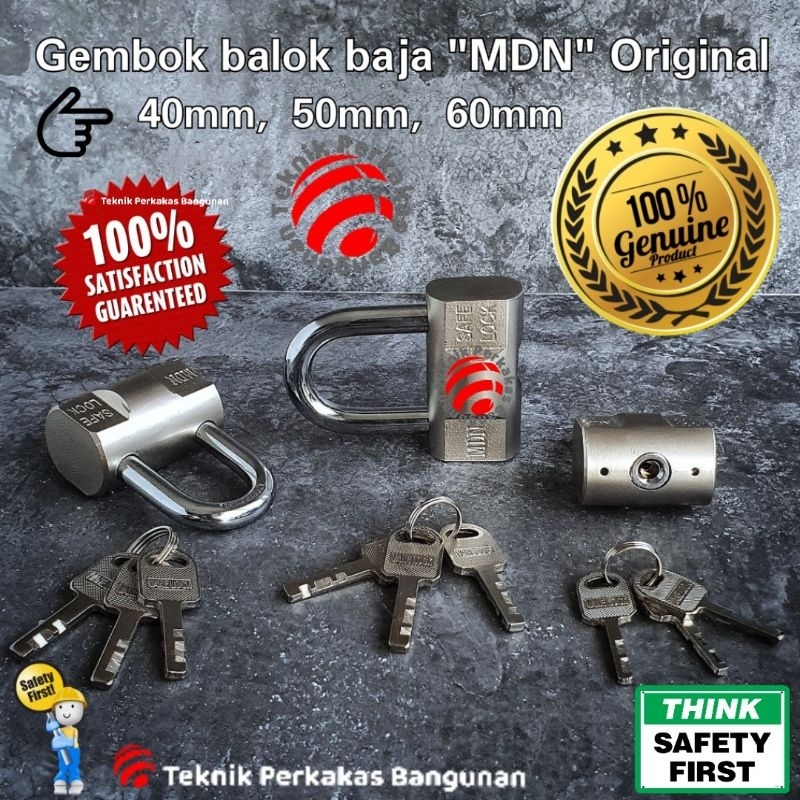 Gembok balok baja anti maling original MDN/ gudang rumah pagar mobil motor 40mm-50mm-60mm