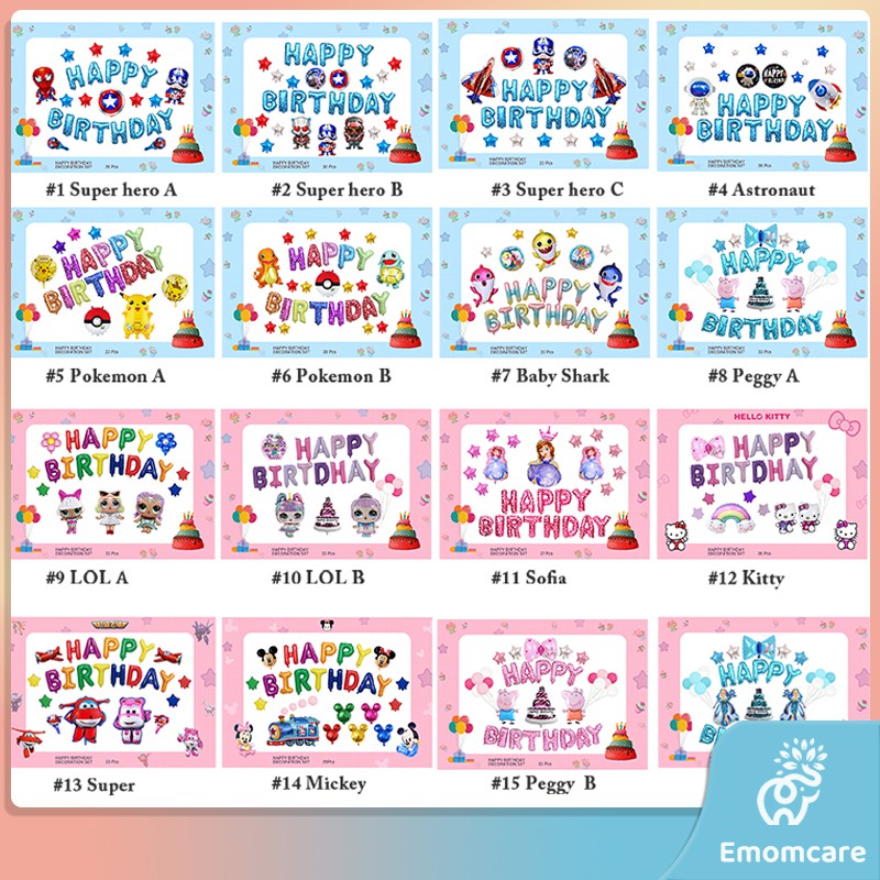 PAKET BALON FOIL SET KARAKTER DEKORASI ULANG TAHUN HURUF PERLENGKAPAN DEKOR ULTAH ANAK PARTY
