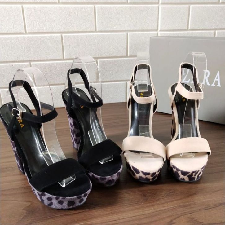 FREE ONGKIR HIGH HEELS ZARA LEOPARD 13CM SUEDE SEPATU HAK TINGGI WANITA