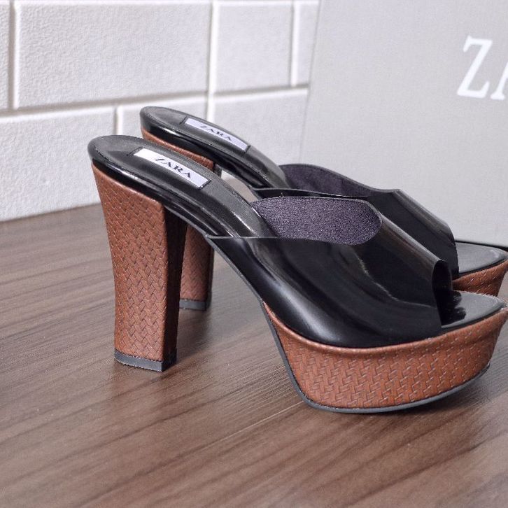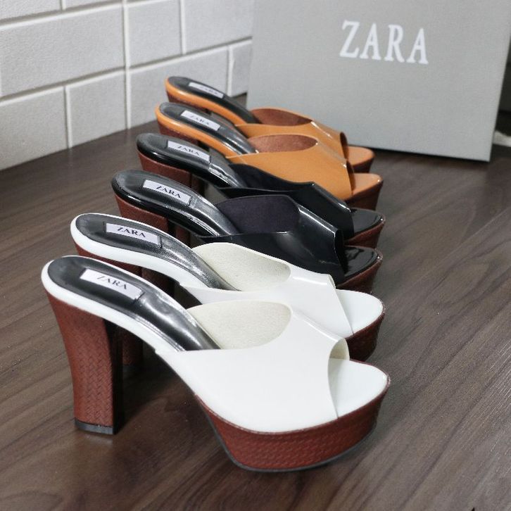 FREE ONGKIR ZARA HEELS SLIDE 10CM GLOSSY