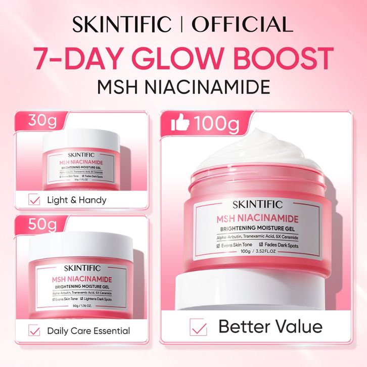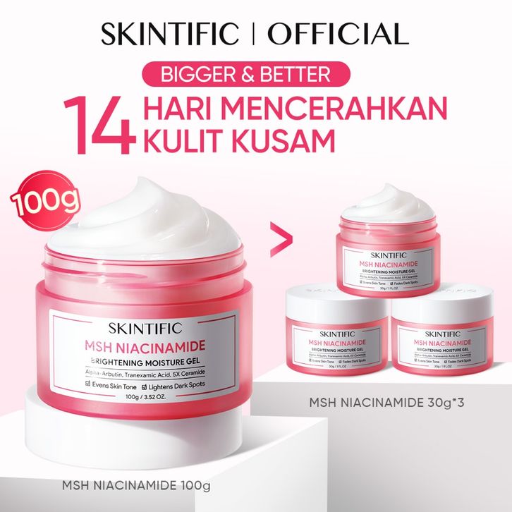 SKINTIFIC - MSH Niacinamide Brightening Moisturizer Gel 100g | Cream Pemutih Wajah Calming Pelembab Wajah
