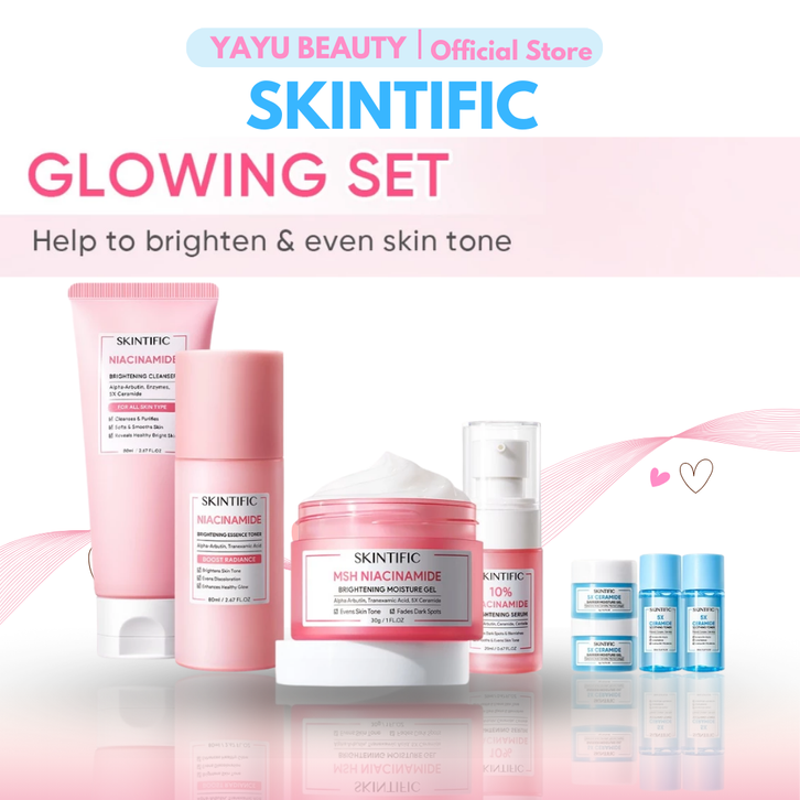 Paket Skincare SKINTIFIC Set Glow Expert Set - 4PC | Serum Wajah Moisturizer Gel Toner Clay Mask Day Night Cream Barrier