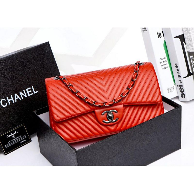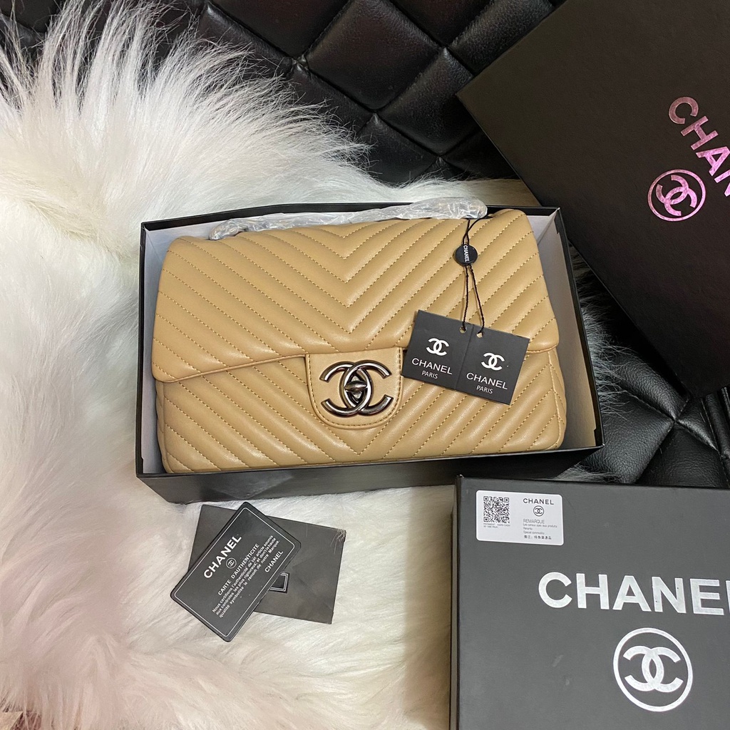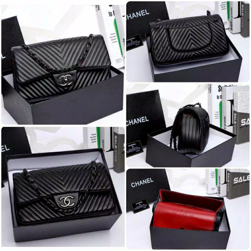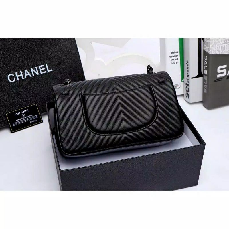 TAS IMPORT MAXY CHEVRON FREE BOX DAN PAPERBAG KOMPLIT ACC. HITAM PREMIUM FLAP LAMBSKY MIRROR BRANDED