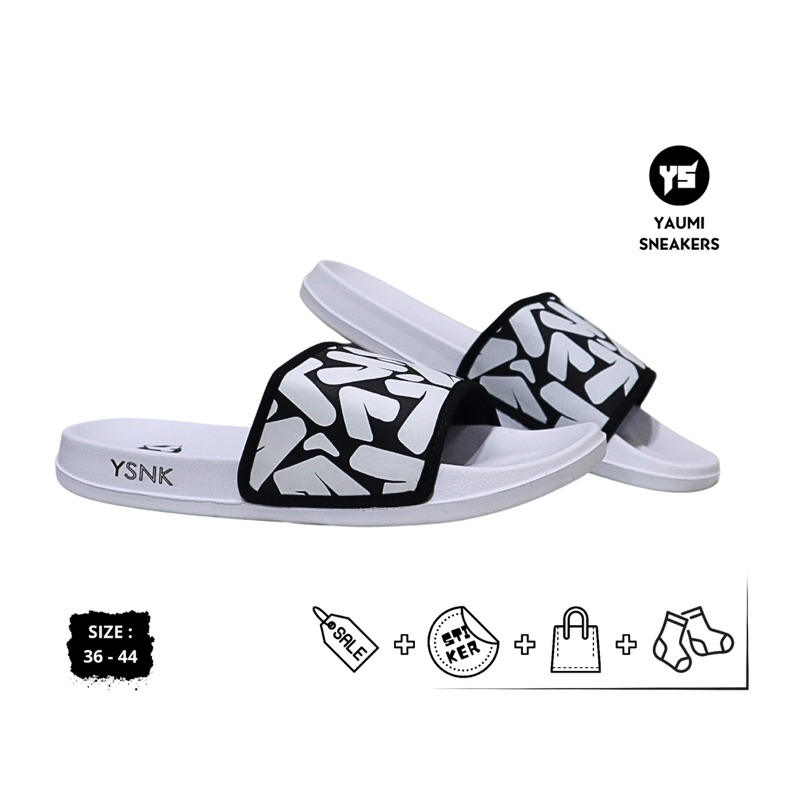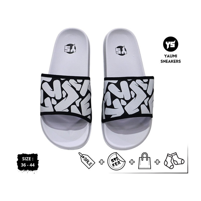 GRATIS ONGKIR YAUMI SNEAKERS WEDNESDAY DOOD WHITE BLACK SANDAL SLOP PRIA