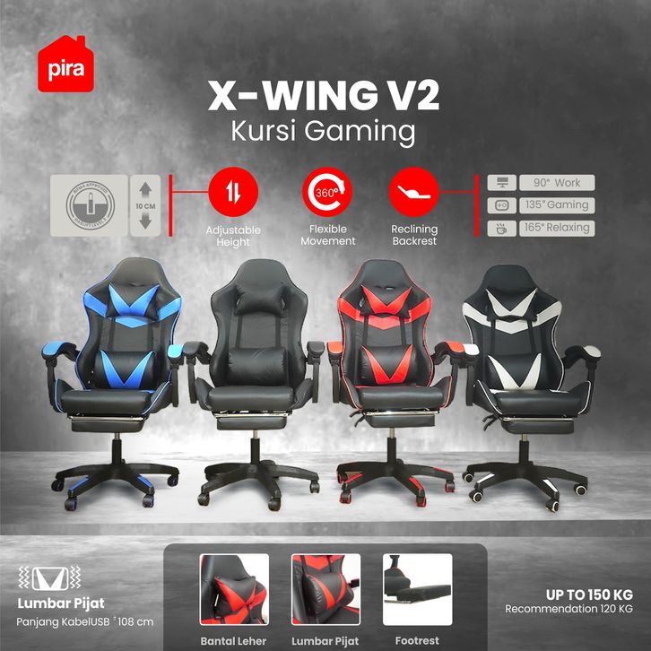 Pira - X-Wing GC V2 Kursi Gaming dengan Sandaran Kaki dan Fitur Massage / Pijat (3PL)