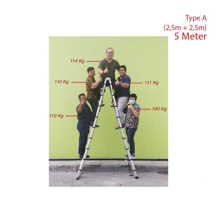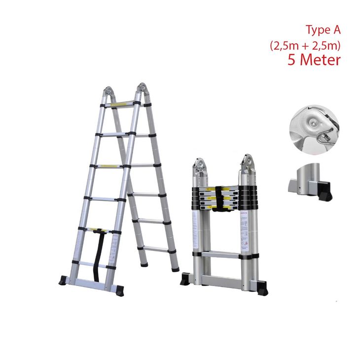 Tangga Lipat Aluminium Teleskopik Tipe A 2.5+2.5 = 5M Double
