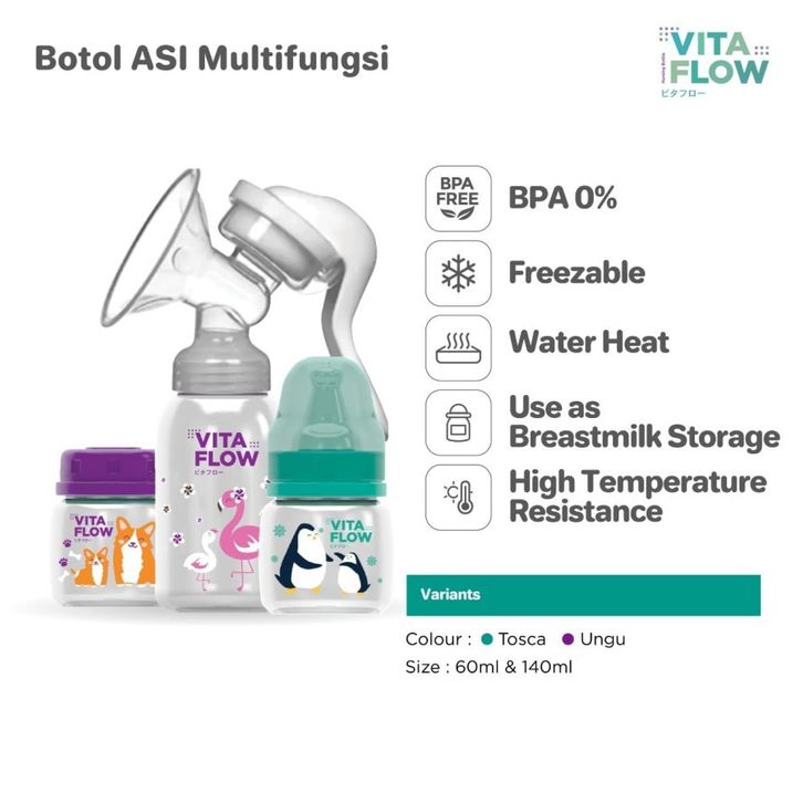 VITA FLOW Botol ASI Plastik BPA Free 4 x 140ml Botol ASIP Standard Neck