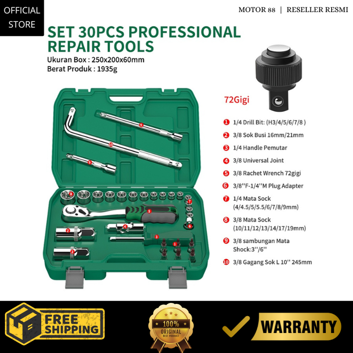 [Star] Kunci Shock Full Set / Kunci Shock Komplit / ISKU Kunci Shock Set 53PCS Kunci Mata Sok Set Socket (1/4 ")