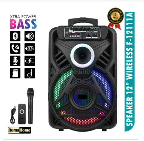 SPEAKER MEETING KARAOKE PORTABLE 12 INCHI BONUS 1 MIC WIRELESS ADA RADIO FM