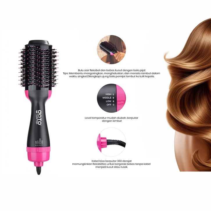 Goto Sirlo Sisir Blow Pelurus Curly Pengering Rambut Elektrik 3in1