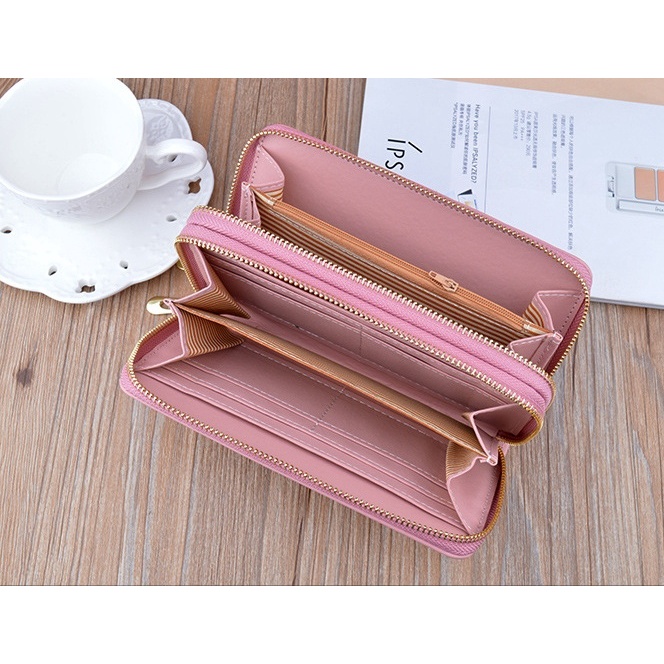 DOMPET PANJANG WANITA 2 RESLETING KULIT PREMIUM IMPORT NAOMI KARTU UANG TALI KOREA BATAM MURAH CEWEK