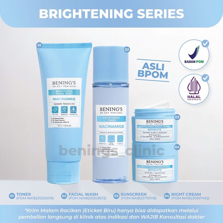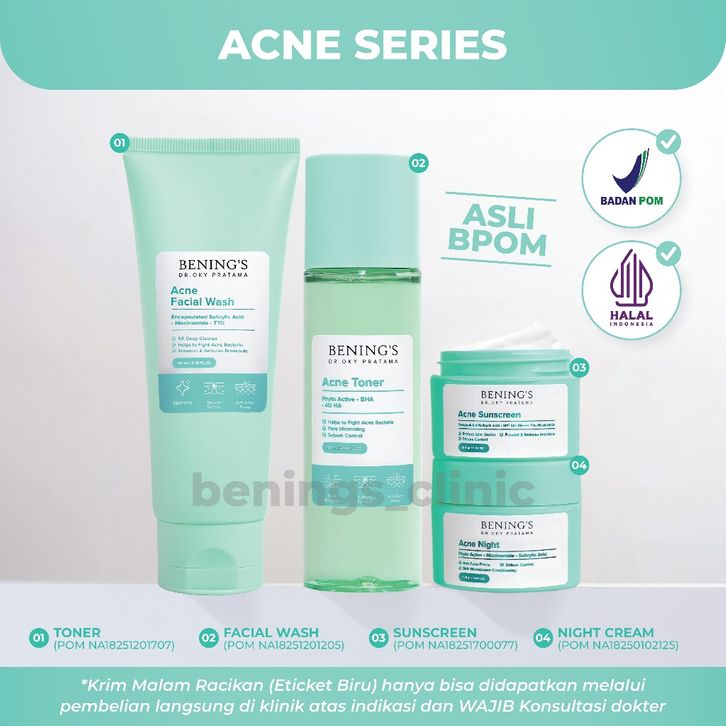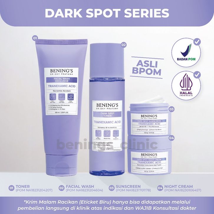 BENINGS PAKET SKINCARE 4IN1 BRIGHTENING ACNE DARK SPOT SERIES FREE SUNSCREEN SPRAY SPF 44 MENCERAHKAN WAJAH