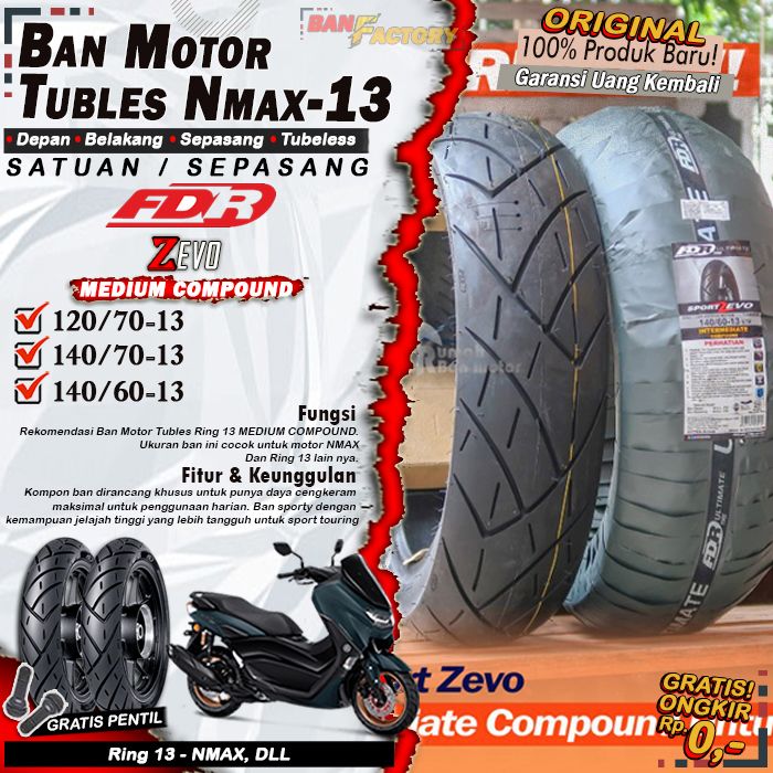 Ban Motor Matic Tubles FDR Sport Zevo Ring 13 Ban Sepasang Depan Belakang Nmax Tubeless