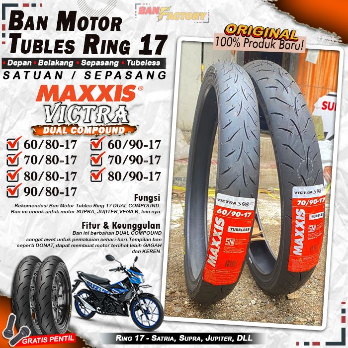 Ban Motor Tubles Maxxis Victra Ring 17 Ban Sepasang Depan Belakang Ninja Vixion R15 Supra Satria Jupiter Tubeless