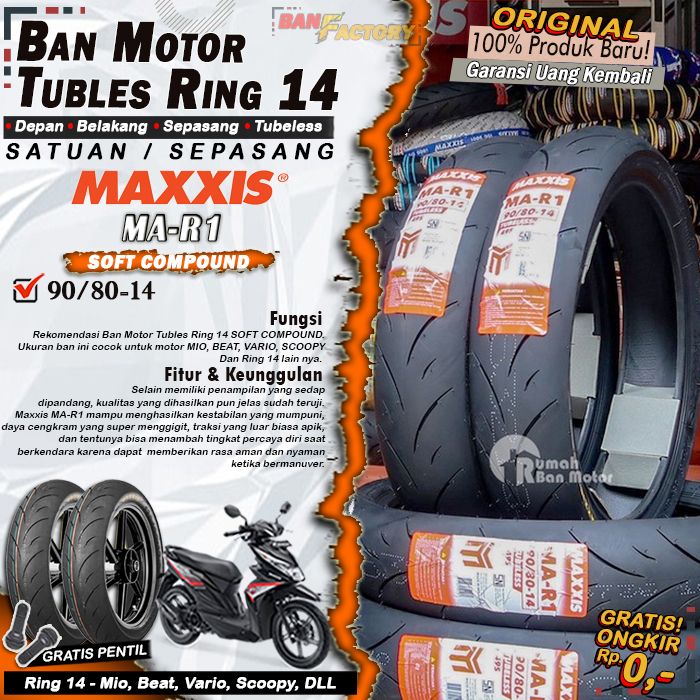 Ban Motor Matic Tubles Maxxis MA-R1 Ring 14 Ban Sepasang Depan Belakang Beat Vario Scoopy Tubeless