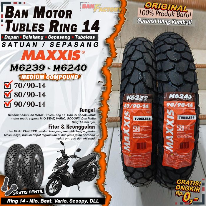 Ban Motor Matic Tubles Maxxis 6239 6240 Ring 14 Ban Sepasang Depan Belakang Beat Vario Scoopy Tubeless