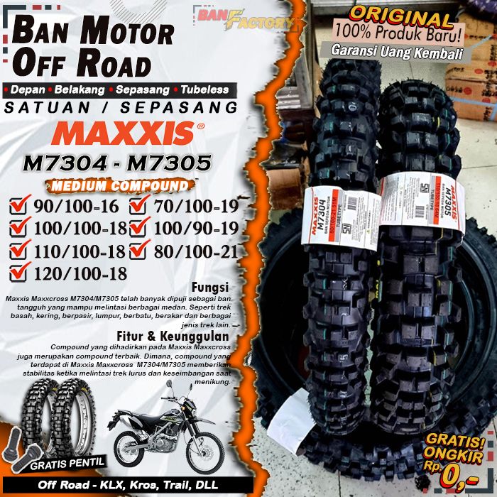 Ban Motor Non Tubles Depan Belakang Trail Cros Kros KLX Maxxis M7304 M7305 Ring 16 18 19 21 Tube Type