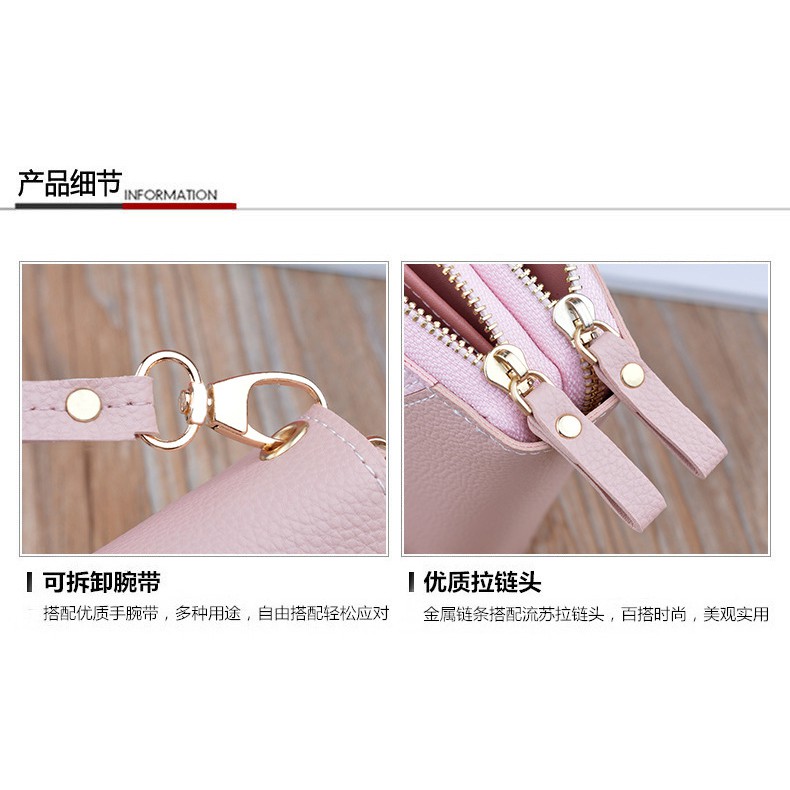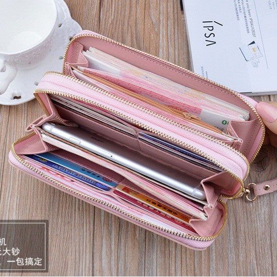 DOMPET WANITA 2 RESLETING PREMIUM PINK KULIT BESAR PANJANG IMPORT KOREA TALI FASHION CORYTA