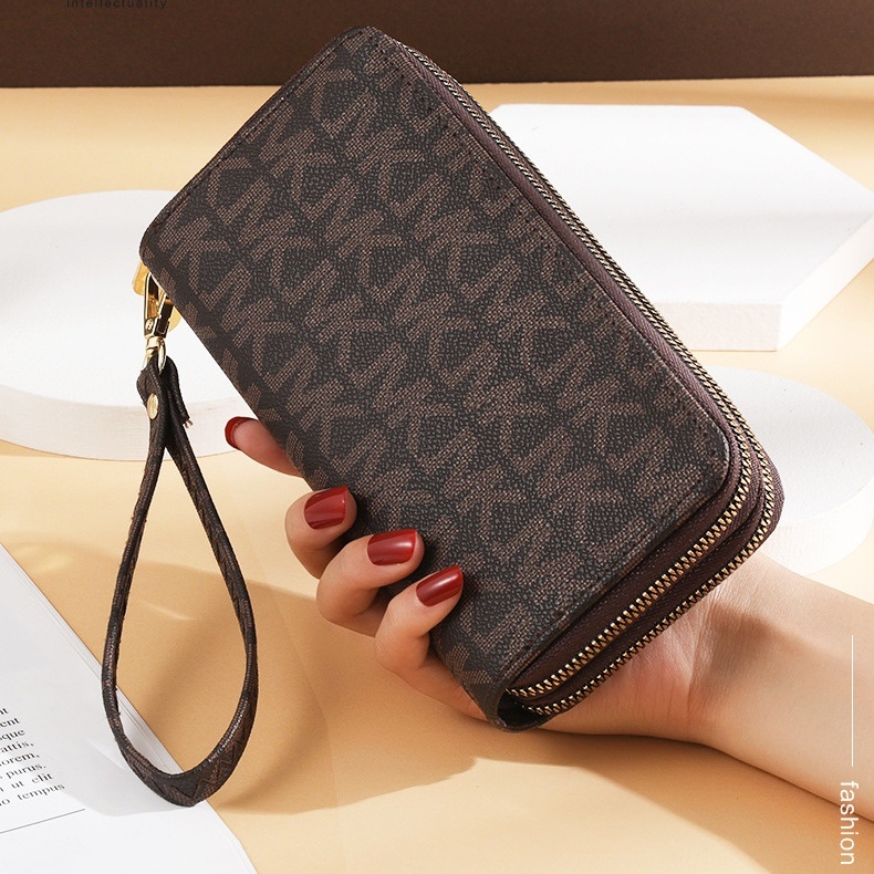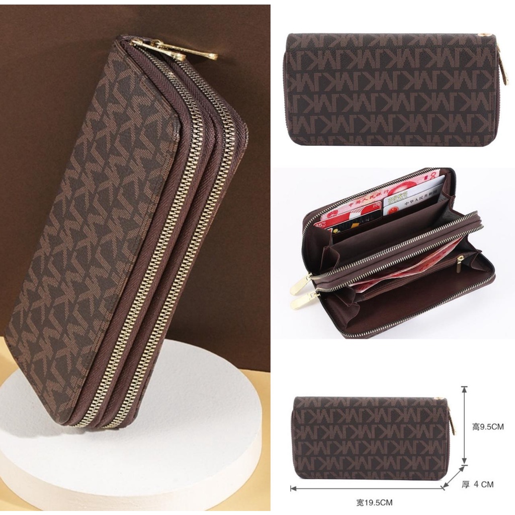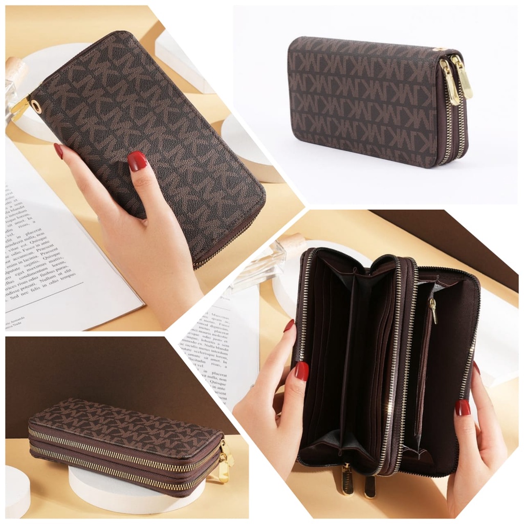 DOMPET PANJANG WANITA PREMIUM 2 RESLETING KULIT COKLAT RADISE WA314B7 PESTA KOREA KARTU IMPORT BATAM