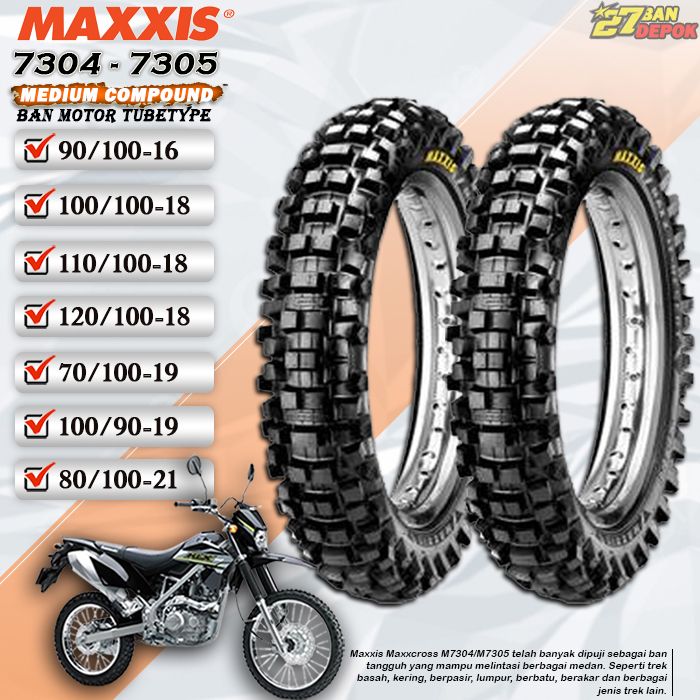 Ban Motor Non Tubles Depan Belakang Trail Cros Kros KLX Maxxis M7304 M7305 Ring 16 18 19 21 Tube Type