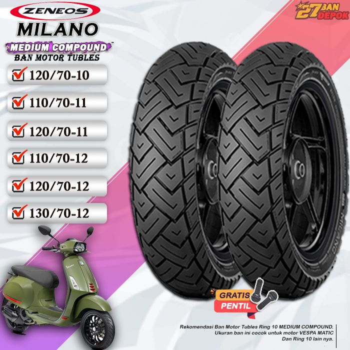 Ban Motor Matic Tubles Zeneos Milano Ring 10 Ban Sepasang Depan Belakang Vespa Matic Tubeless