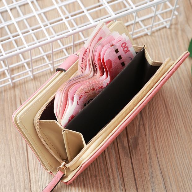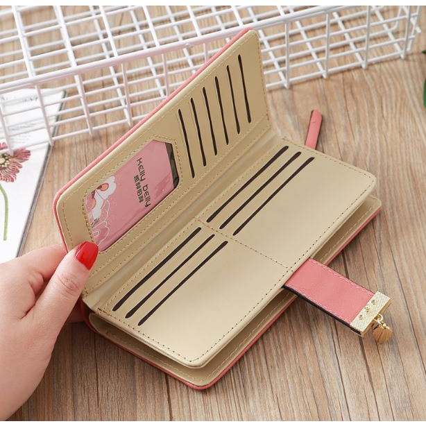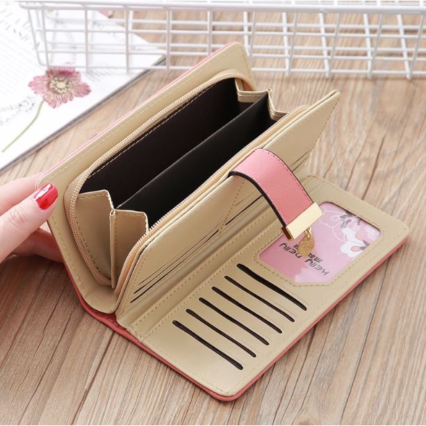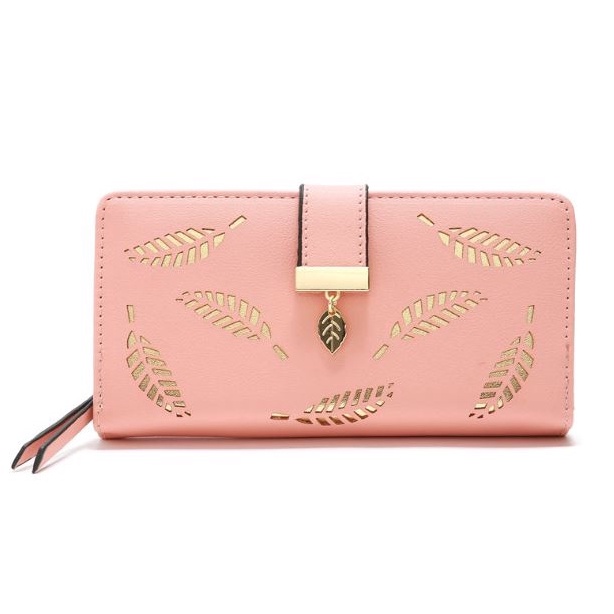 DOMPET PANJANG WANITA PREMIUM KULIT LEAF WA023P3 PINK KOREA IMPORT MURAH MOTIF DAUN FASHION BATAM BRANDED